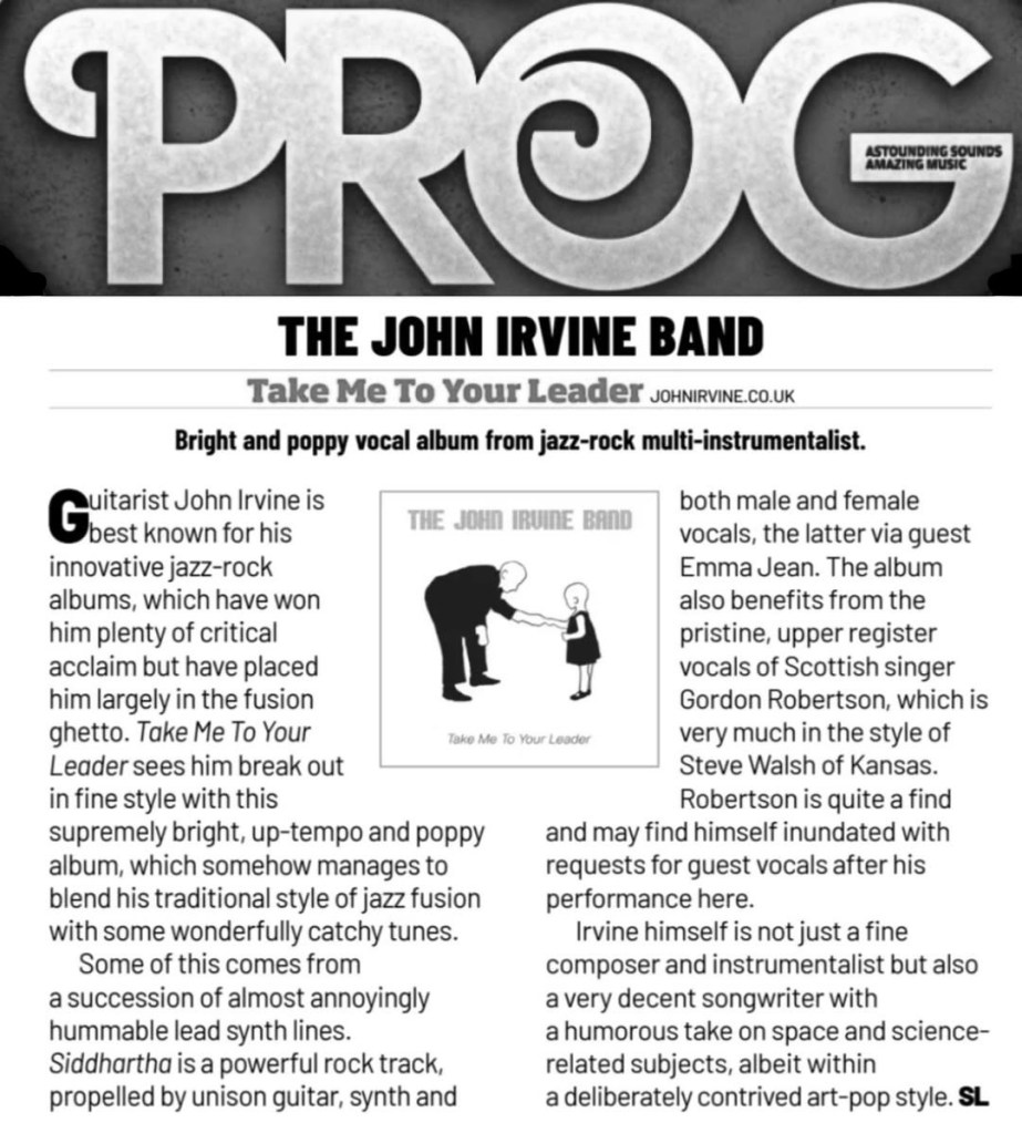 So, in 2010 I began to write music for a guitar trio setting and formed The John Irvine Band in 2011 – the result became my first album, ‘Wait & See’. Two more albums followed in this vein ‘Next Stop’ (2013) and ‘Metaphysical Attractions’ (2018) until I decided to add a more progressive element to the music resulting in ‘The Machinery Of The Heavens’ (2020) and ‘Psychopomp’ (2022). Of course, being a child of the 70s, my interest in progressive music has always been there – Gentle Giant, Rush, Vangelis… and so many other great bands. ‘The End of Days Trilogy’ followed with ‘Scanning The Dark Horizon’ (2023), The Starships Are Gathering’ (2024) and ‘Here Come The Robots!’ (2025). And this year I released the first ‘all vocal’ JIB album ‘Take Me To Your Leader’, featuring Gordon Robertson.